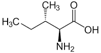 류신(좌), 아이소류신(중앙), 발린(우)의 화학 구조, 아미노산의 R기가 가지를 가진 지방족 탄화수소로 되어있습니다.